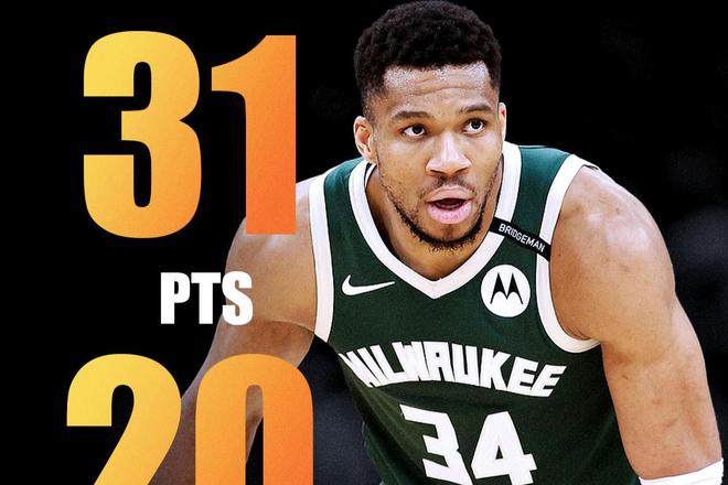 今天字母哥出战38分钟,14投11中,三分球2投全中,得到了31分20篮板7助攻1封盖。夸张的是,20个篮板球里面包括7个进攻篮板。上一次面对猛龙队至少得到30分20篮板的,还是2023年1月份的字母哥。科比在猛龙头上拿到81分,詹姆斯在东部是猛龙队多年苦主,现在又是字母哥。所以,猛龙队是超巨检测器?新赛季揭幕战,字母哥的表现同样夸张,面对奇才队,26投16中,得到了37分14篮板5助攻。两场比赛的命中率全部超过60%,这么一来,新赛季前两场比赛,字母哥以60%的命中率至少得到30分10篮板5助攻,是NBA历史上第一位做到这一点的球员。
